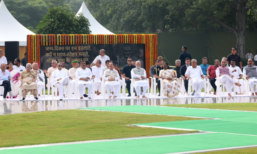 दिल्ली में स्मृति स्थल पर हुई प्रार्थना सभा में राष्ट्रपति उपराष्ट्रपति जगदीप धनखड़ के साथ राजनाथ सिंह, जेपी नड्डा, लोकसभा अध्यक्ष ओम बिरला, मनोहर लाल खट्टर समेत NDA एलायंस और भारतीय जनता पार्टी के सदस्य भी पहुंचे।