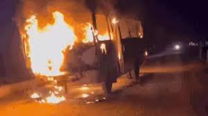 बाराती बस में लगी आग, ड्राइवर ने कूदकर बचाई जान