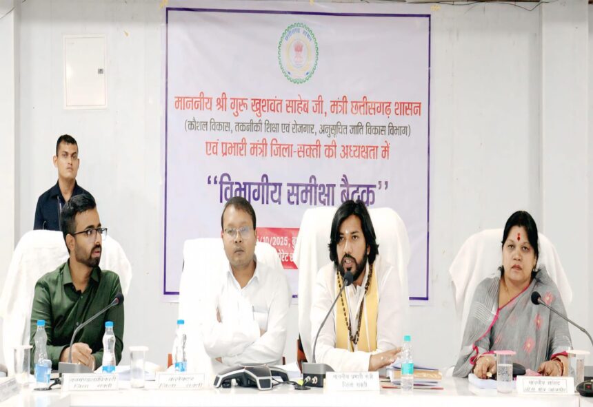 सक्ती। सक्ती जिला के प्रभारी मंत्री गुरु खुशवंत साहेब जी की अध्यक्षता में मंगलवार को जिला कार्यालय सभागार में पहली समीक्षा बैठक आयोजित की गई। बैठक में विभागवर योजनाओं, राजस्व प्रकरणों, लोकसेवा गारंटी एवं विकास कार्यों की विस्तृत समीक्षा की