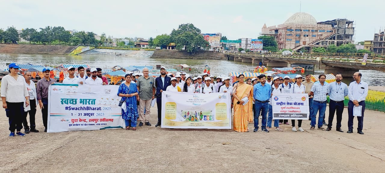 रायपुर :- “स्वच्छता ही सेवा पखवाड़ा” के अंतर्गत आज महादेव घाट परिसर में स्वच्छता कार्यक्रम एवं स्वच्छता शपथ का आयोजन किया गया। राष्ट्रीय सेवा योजना से दुर्गा महाविद्यालय, गुरुकुल महिला महाविद्यालय, माय भारत, जियोलॉजिकल सर्वे ऑफ इंडिया के संयुक्त तत्वावधान में एवं नगर पालिक निगम रायपुर के सहयोग से किया गया।