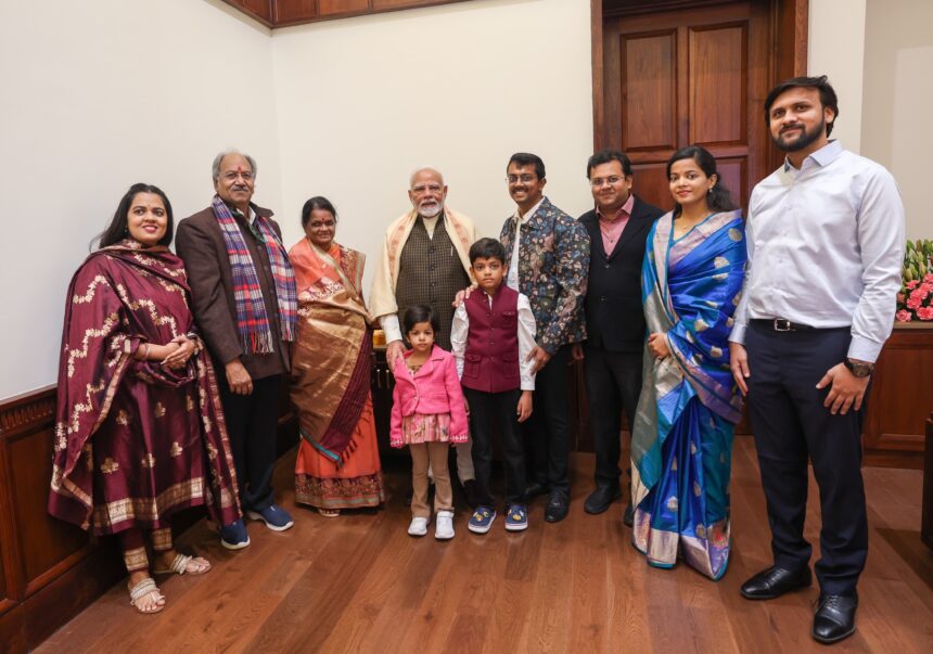 पीएम मोदी से पूरे परिवार के साथ मिले सांसद बृजमोहन अग्रवाल बेटे आदित्य की शादी का दिया न्योता