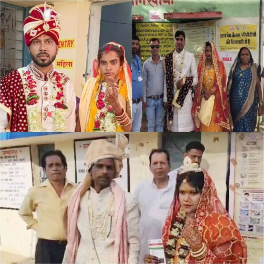 लोकतंत्र के महापर्व के बीच लोगों में जबरदस्त उत्साह, कहीं सात फेरे लेकर तो कहीं विदाई के बाद वोट देने पहुंचे दूल्हा दुल्हन