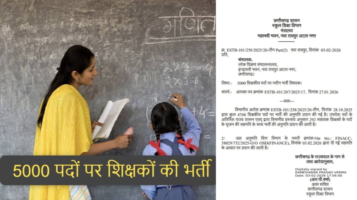 ब्रेकिंग : छग में 5000 पदों पर होगी शिक्षकों की भर्ती, 292 सहायक शिक्षकों के पदों पर भर्ती की मिली स्वीकृति
