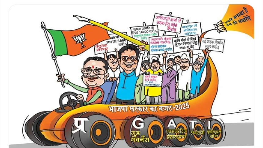 बजट को लेकर भाजपा ने जारी किया ये कार्टून, लिखा, विष्णु के सुशासन में प्रदेश की प्रGATI को लगे नए पंख