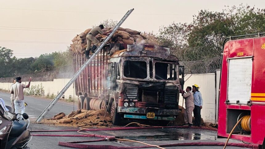 CG : चलती ट्रक में लगी आग, धू-धूकर जल उठा धान से भरा वाहन!