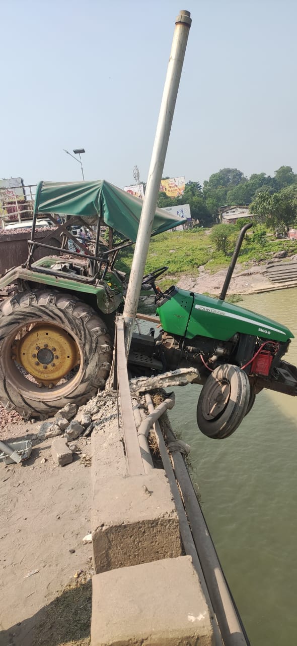 CG : नदी के पुल की रेलिंग तोड़कर अंदर घुसा ट्रैक्टर, देखें दिल दहला देने वाला मंजर
