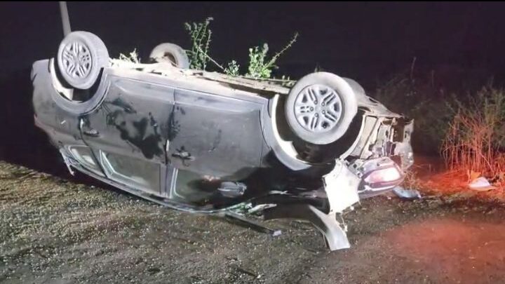 कार सड़क किनारे कई बार पलटी, एयरबैग ने बचाई जान