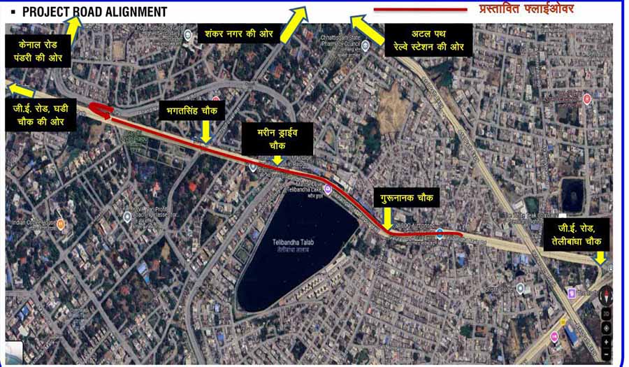 चालू वित्तीय वर्ष 2025-26 के बजट में इस फ्लाईओवर के निर्माण को शामिल किया गया था। करीब डेढ़ किलोमीटर लंबे इस फोरलेन (16.61 मीटर चौड़ा) फ्लाईओवर के निर्माण से शंकर नगर चौक, केनाल रोड क्रासिंग व गुरूनानक चौक में यातायात की समस्या से निजात मिलेगी। इस फ्लाईओवर से नगर घड़ी चौक से यातायात सीधे तेलीबांधा थाने तक पहुंच जाएगी तथा नगर घड़ी चौक का ट्रैफिक तेलीबांधा चौक से पहले बांयी ओर मुड़कर अटल एक्सप्रेस-वे से सीधे एयरपोर्ट तक पहुंच जाएगा।