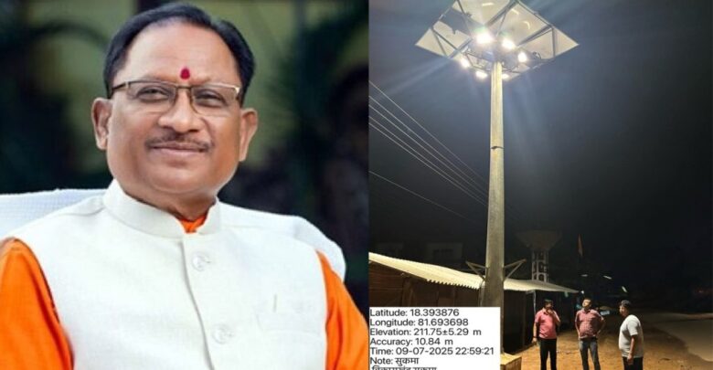 माओवाद प्रभावित गांवों में विकास की रोशनी: नियद नेल्लानार योजना के तहत बस्तर में सोलर हाई मास्ट संयंत्रों से चमके गांव