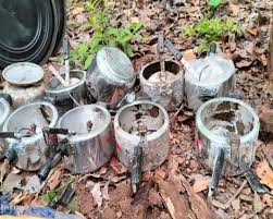 टीम ने कुकर बम बनाने के लिए इस्तेमाल होने वाले 10 प्रेशर कुकर, 15-15 लीटर के तीन डब्बे, 2 प्लास्टिक ड्रम सहित कई विस्फोटक सामग्री और दैनिक उपयोग के सामान बरामद किए हैं। यह सारी सामग्री नक्सलियों ने पुलिस बलों को नुकसान पहुंचाने के लिए जंगल में छिपाकर रखी थी।