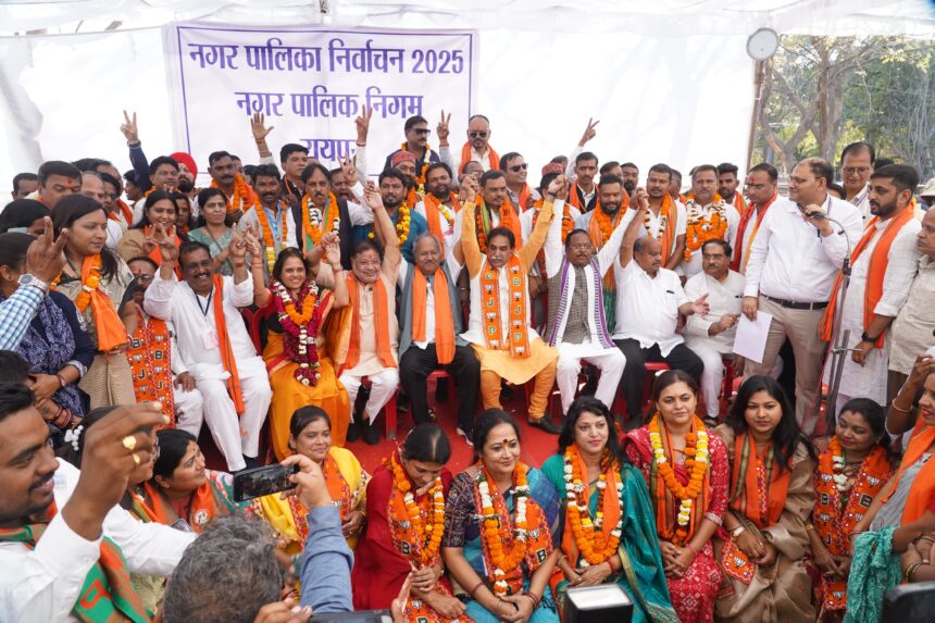 रायपुर : भारतीय जनता पार्टी को छत्तीसगढ़ के निकाय चुनावों में मिली ऐतिहासिक जीत पर सांसद बृजमोहन अग्रवाल ने सभी विजयी प्रत्याशियों को हार्दिक बधाई दी है और प्रदेश की जागरूक जनता, समर्पित कार्यकर्ताओं एवं समर्थन देने वाले सभी नागरिकों का आभार व्यक्त किया है।