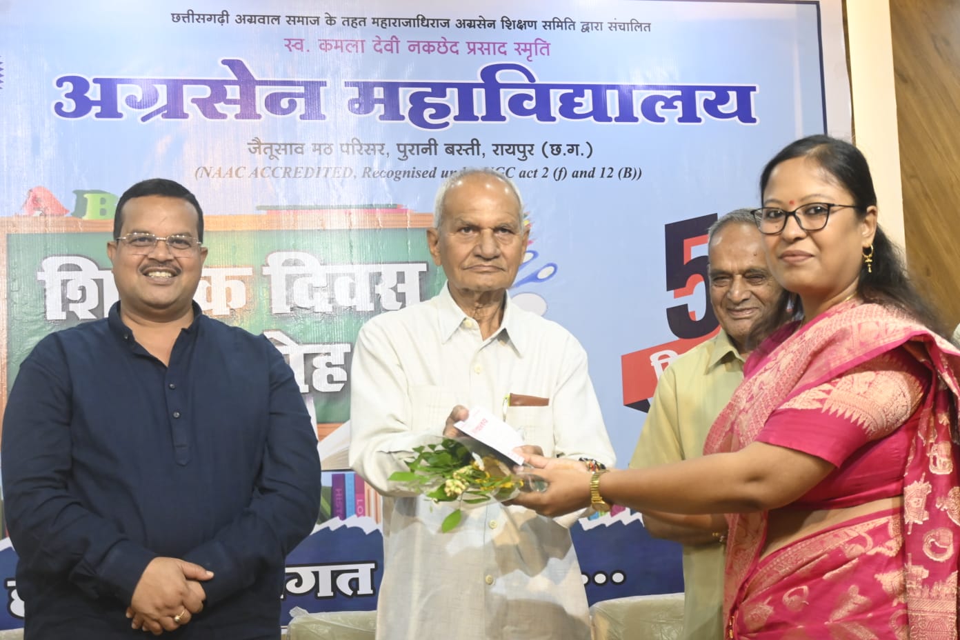 अग्रसेन महाविद्यालय में मनाया गया शिक्षक दिवस, प्रो रूखमणी अग्रवाल को मिला गौरवशाली प्राध्यापक का सम्मान