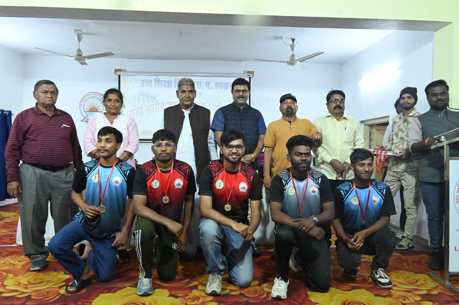 रायपुर :- गांधी चौक स्थित महंत लक्ष्मी नारायण दास महाविद्यालय गांधी में आज राज्य स्तरीय शतरंज प्रतियोगिता का समापन हुआ जिसमें विजेता पुरुष वर्ग से रायपुर सेक्टर के उपविजेता दुर्ग सेक्टर के एवं महिला वर्ग से विजेता रायपुर सेक्टर व उपविजेता दुर्ग सेक्टर से रही ज्ञात हो कि इस दो दिवसीय राज्य स्तर प्रतियोगिता में संपूर्ण छत्तीसगढ़ के 11 सेक्टर से 132 से अधिक छात्र-छात्राएं प्रतियोगिता में हिस्सा लिए कार्यक्रम के समापन में मुख्य अतिथि श्री अजय तिवारी , अध्यक्ष शासी निकाय एवं कार्यक्रम की अध्यक्षता डॉ देवाशीष मुखर्जी प्राचार्य महंत लक्ष्मी नारायण दास ने किया साथ ही विशेष रूप से सेवा निवृत श्री पी के हरि सर, रामानंद यदु व विभिन्न महाविद्यालय के कीड़ा अधिकारी मौजूद रहे इस अवसर पर मुख्य अतिथि ने कहा कि यह जीत आपके लिए जीवन में एक नया उमंग भरेगा साथ ही हरने वाले खिलाड़ी एक नई सबक के साथ अपने जीवन में उन्नति के नए नियोजन करेंगे कार्यक्रम की अध्यक्षता कर रहे डॉ देवाशीष मुखर्जी ने कहा कि सातवीं शताब्दी से भारत देश ने ही संपूर्ण विश्व को शतरंज का खेल प्रदान किया यह भारत देश से प्रारंभ होकर अरब देश होकर यूरोप से शतरंज के रूप में प्रसिद्ध हुई निर्णायकगण में मुख्य रूप से रोहित यादव ने अपनी भूमिका निभाई कार्यक्रम का संचालन मनोज प्रधान सर ने की एवं कार्यक्रम में विशेष रूप से प्यारेलाल साहू, डॉ रिंकू तिवारी, तुलाराम एवं अन्य कीड़ा अधिकारी उपस्थित हुए