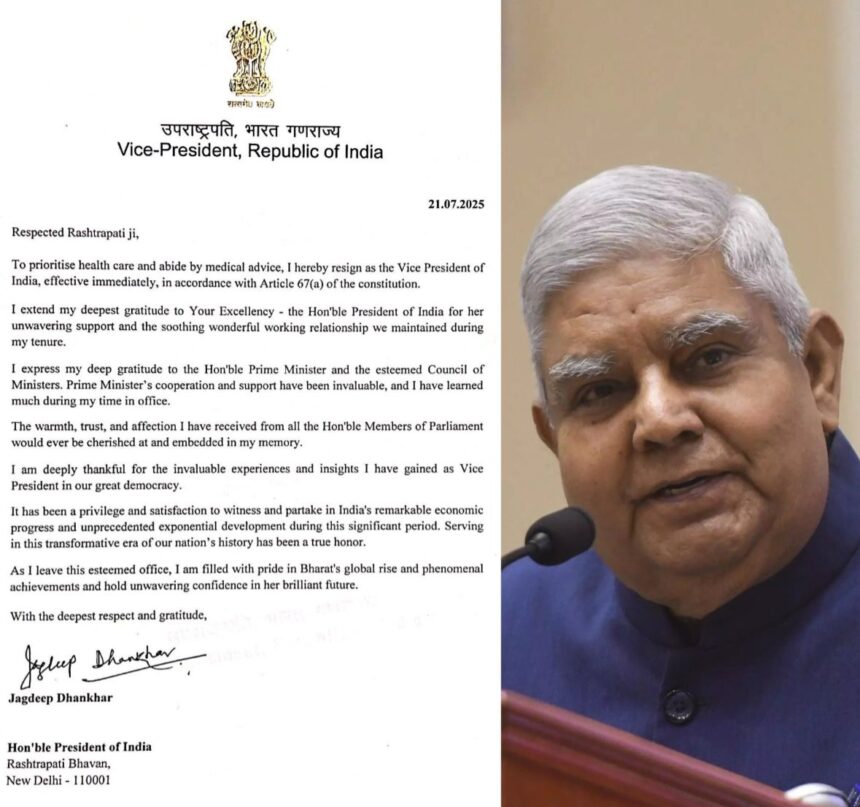 जगदीप धनखड़ ने उपराष्ट्रपति के पद से दिया इस्तीफा, सामने आई बड़ी वजह