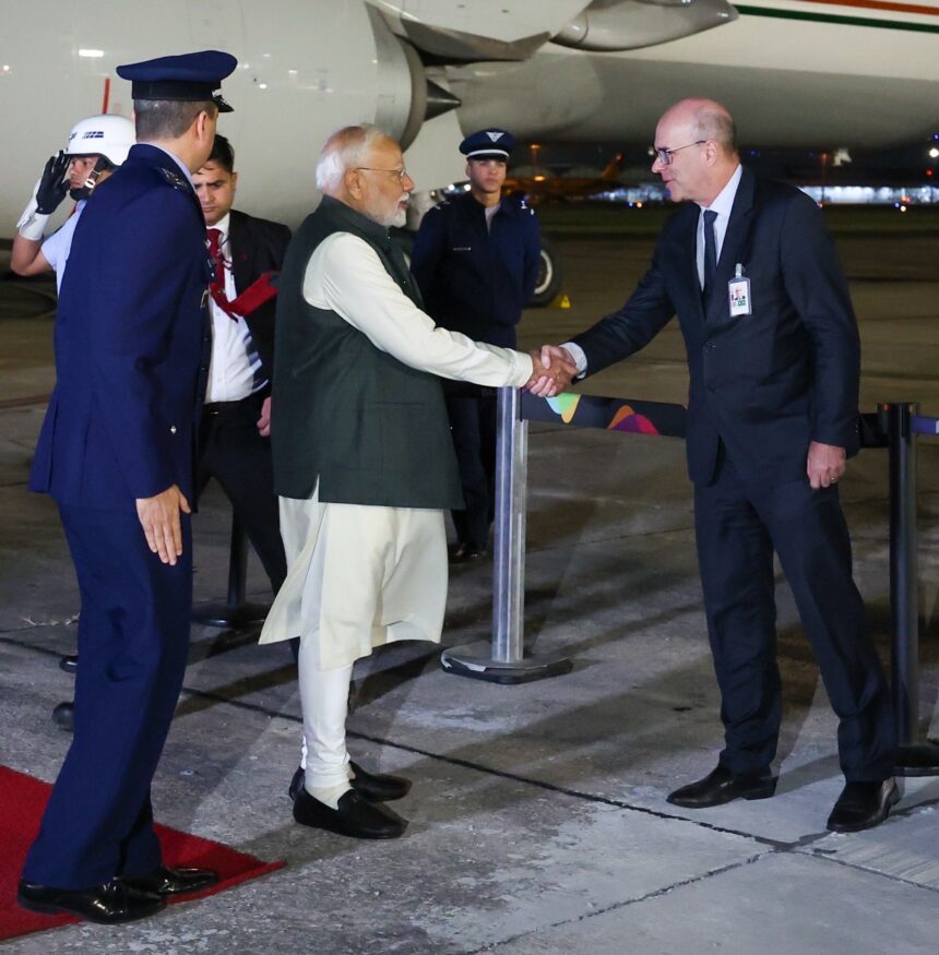 PM मोदी पहुंचे ब्राजील, BRICS सम्मेलन में लेंगे हिस्सा — वैदिक मंत्रोच्चार और सांस्कृतिक नृत्य के बीच हुआ भव्य स्वागत