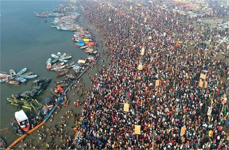 प्रयागराज: उत्तर प्रदेश के प्रयागराज के माघ मेले में मौनी अमावस्या के अवसर पर रविवार शाम पांच बजे तक चार करोड़ से ज्यादा श्रद्धालु त्रिवेणी में पावन डुबकी लगा चुके थे। कल सुबह चार बजे से ही मौनी अमावस्या का स्नान शुरू हो गया था। जैसे जैसे सूरज निकला उसी रफ़्तार से श्रद्धांलुओं की भीड़ भी बढ़ने लगी भीड़ क़ा आलम ये था कि 11 बजे सुबह तक ही एक करोड़ लोगो ने स्नान कर लिया था। श्रद्धालुओं की भीड़ क़ो देखते हुए पुलिस ने भी अपनी योजना मे बदलाव करते हुए दूसरे रास्ते से स्नान घाट तक पहुंचाया।