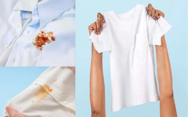 अगर कपड़ा सफेद है, तो यह दाग बहुत बुरा दिखता है। ऐसे में दाग वाली जगह पर तुरंत ठंडा पानी डालें। इसके बाद बेकिंग सोडा छिड़कें और हल्के हाथ से रगड़ें। 15-20 मिनट बाद धो लें। वहीं पुराने दाग के लिए विनेगर (सफेद सिरका) और पानी का घोल इस्तेमाल करें।