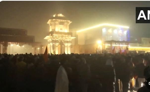 प्रभु रामलला के दर्शनों के लिए सुबह तीन बजे से ही मंदिर के सामने श्रद्धालु जुटने लगे. कड़कड़ाती ठंड में भी वो बस किसी भी हाल में अपने भगवान का दर्शन करना चाहते हैं. राम मंदिर के सामने की तस्वीरें भी सामने आई हैं, जहां रात से भी मंदिर के द्वार पर बड़ी संख्या में लोगों को इकट्ठा देखा जा सकता है. लोग लगातार जय श्री राम और सियावर राम चंद्र की जय के जयकारे लगाते हुए सुनाई दिए. भक्तों को जोश देखते ही बन रहा था.