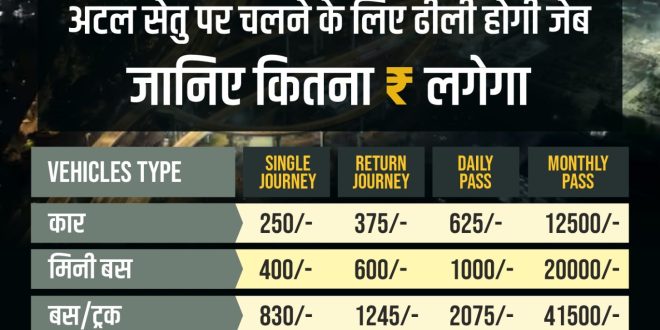 अटल सेतु पर चलने के लिए जेब ढीली करनी पड़ेगी जानिए, कितना लगेगा किराया